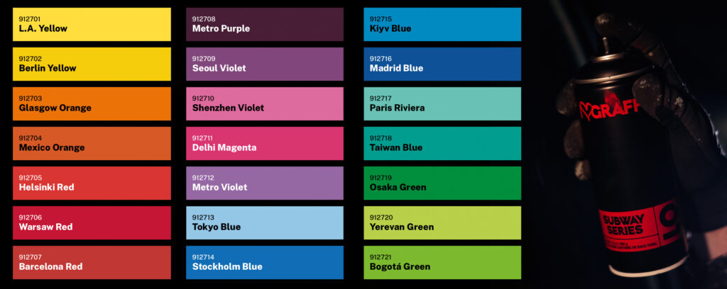 “For many years, we’ve had the idea to connect the countless spraycan colors with the objects of desire for our community – the trains, or more specifically, the subways of the world – which have been with us at ILOVEGRAFFITI.DE for over 17 years, and for us as writers, even over 35 years. Now, the time has come! We’ve taken a look at 24 subway systems and their color schemes, comparing them with existing paint colors, and we found 24 perfect matches! The result is a Limited Edition Spray Can Series, dedicated to various subway systems around the world, including Berlin, Taiwan, Paris, New York, and many more!