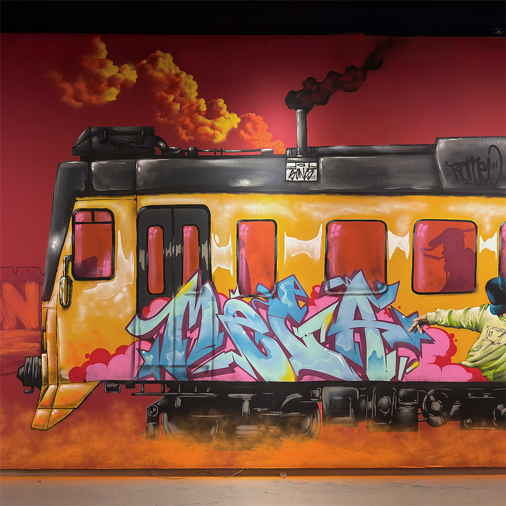 The result is a powerful visual dialogue that reflects both individuality and collaboration, embodying the idea of connecting generations through graffiti art. Located on a pillar of the Kurt-Schumacher-Brücke, the mural is fully integrated into public space, allowing passersby to witness the creative process as it unfolded and to engage with the finished work in their everyday environment. This openness is central to the project’s concept, shifting art away from traditional gallery settings and placing it directly into the urban landscape where it becomes accessible to everyone.