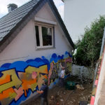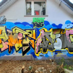 Graffiti artist AMIT 2.0 continues his NAMEDROPPING project with another nice style exchange. This time with Graffiti artist TOP NOTCH from Essen, Germay. He and AMIT 2.0 designed a wall in connection with the Bürgerpark Gallery. Surrounded by detached houses and dwarfs another production of the name dropping project developed.