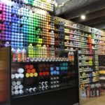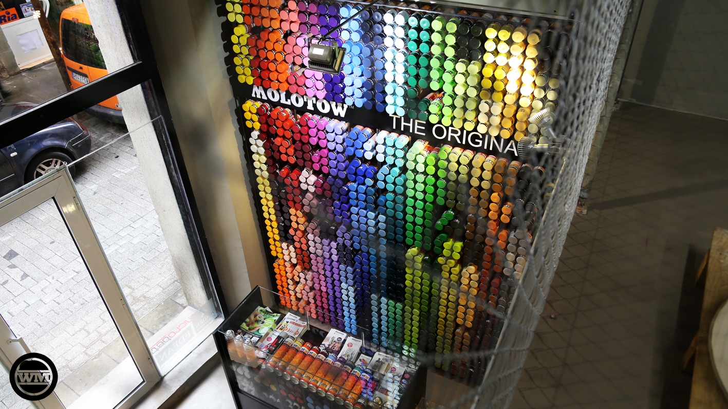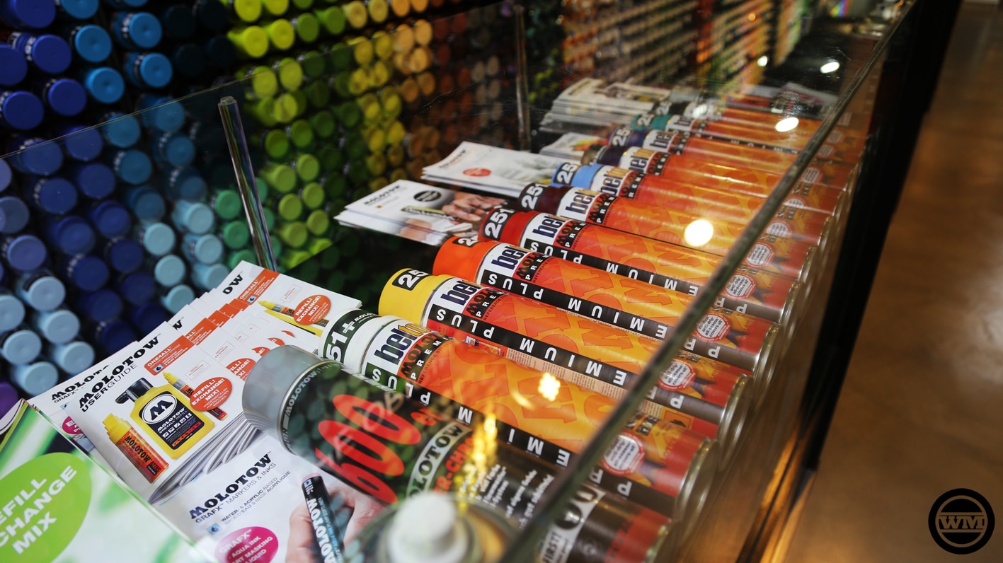 The ANDEN Shop in Barcelona now runs nearly the full range of MOLOTOW Products including MOLOTOW Premium, MOLOTOW Burner Chrome, the Covers All Series, the FLAME Blue Spraypaint Series with it´s 94 colors as well the new FLAME Orange Spraypaint Line. The ANDEN Shop racks are fully stocked to make MOLOTOW available to one of the most active and creative Street Art Scene in Europe. Well sorted and displayed in the Skyline Rack Systems to give a complete overview and learn how are the MOLOTOW Marker product series such as ONE4ALL, MASTERPIECE, BASIC, GRAFX, TRANSFORMER or DRIPSTICK as well as numerous Utilities interact with the whole range. If you are in town checkout the store, it´s worth a visit, not just because the Shop also held regular art exhibitions at the Shop Gallery. A short video and photos as well as additional informations please find after the jump!