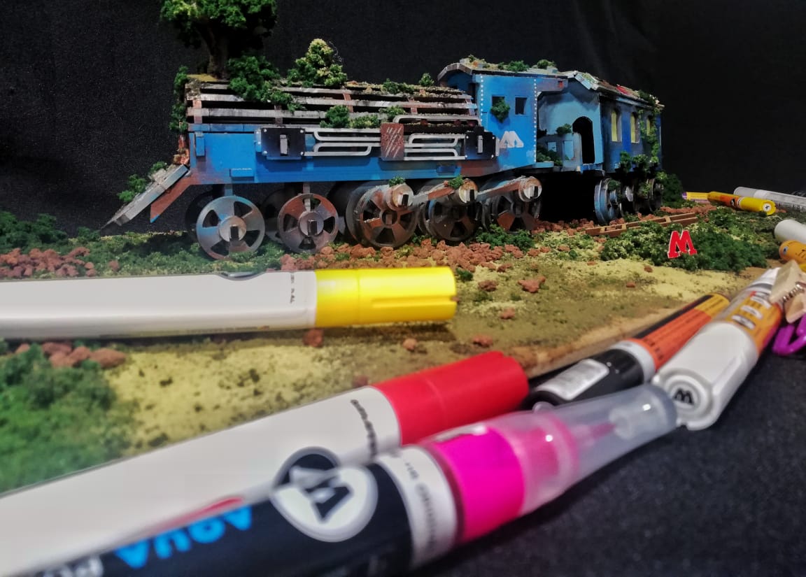 Here are a few photos of a new drawing by ANDREA VALVERDE ROJAS using the MOLOTOW AQUA COLOR BRUSH Markers in a nice way again! The MOLOTOW Train!