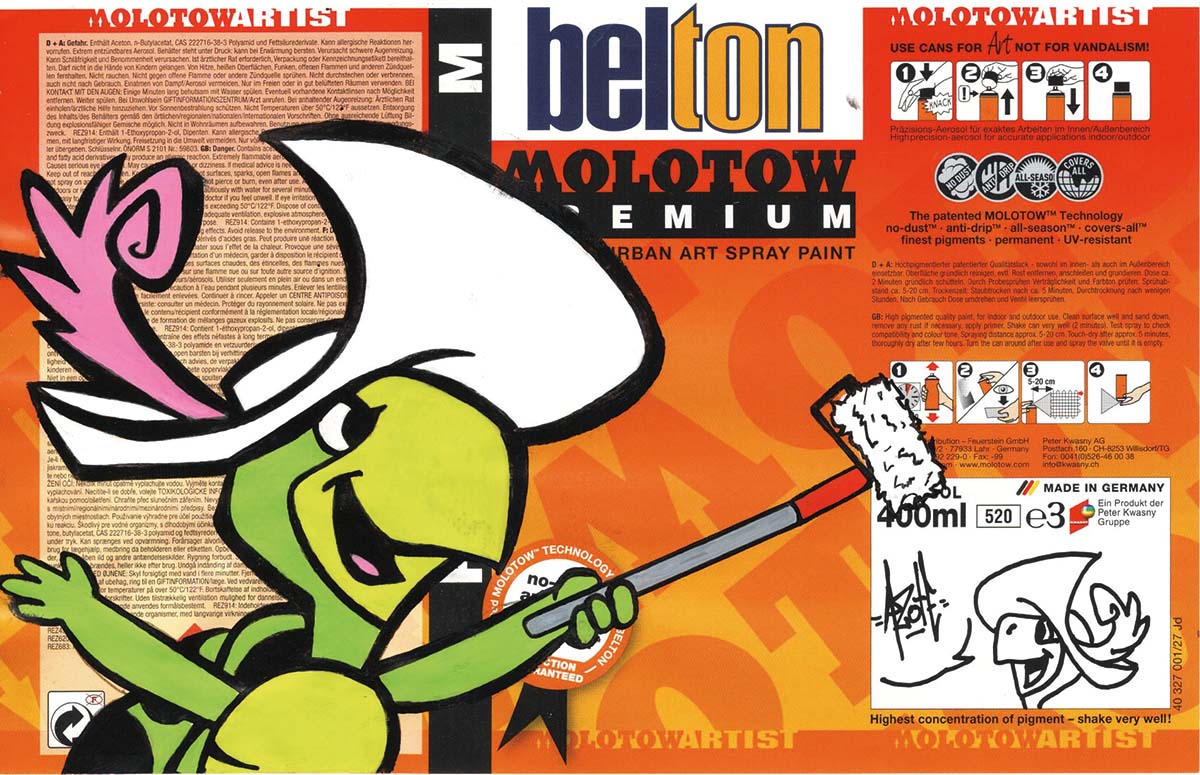 French graffiti artist AZOTE of the Flying Caps Collective St.Etienne just sent in these handpainted MOLOTOW PREMIUM Spraypaint Labels. As you can see this artist is pretty much into well known comic figures, a fun way to use ONE4ALL Acrylic markers on the Premium paper Labels!