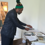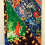 In his artworks at Backjumps 20+ 1 you can see the use of three important colours – red for blood, black for skin and green for land, which can be seen on the Afro liberation flag and signify this movement. His artworks do not focus on the very distant past, but rather represent the 60s, 70s and 80s periods which he knows well from personal experience, as well as combining different styles and cultures, much like Afrika Bambaataa do in their music.