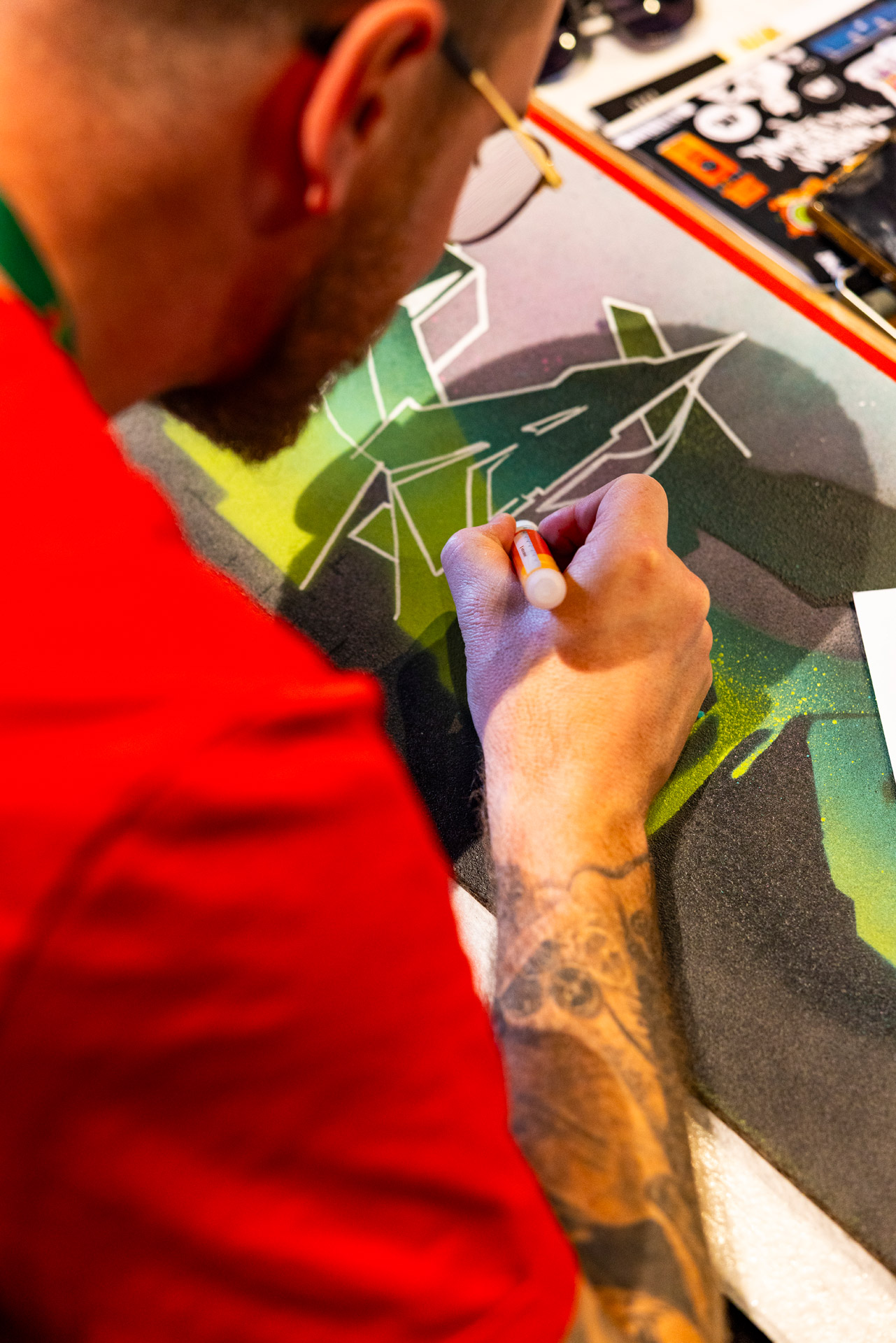 The sticker workshops were held on Saturday and Sunday, from 1:30 PM to 2:30 PM each day, introducing participants to the “little gems of the streets.” What’s the deal with these stickers? Is there a sticker community? How do I connect with other sticker heads? What kind of sticker materials and tools are available? All these questions were answered in the sticker workshop, and participants eagerly created stickers using MOLOTOW ONE4ALL Acrylic Markers and Blackliners. Beautiful and unique “slaps” were made, and as a final task, participants were invited to create a small collaboration with the person sitting next to them.
