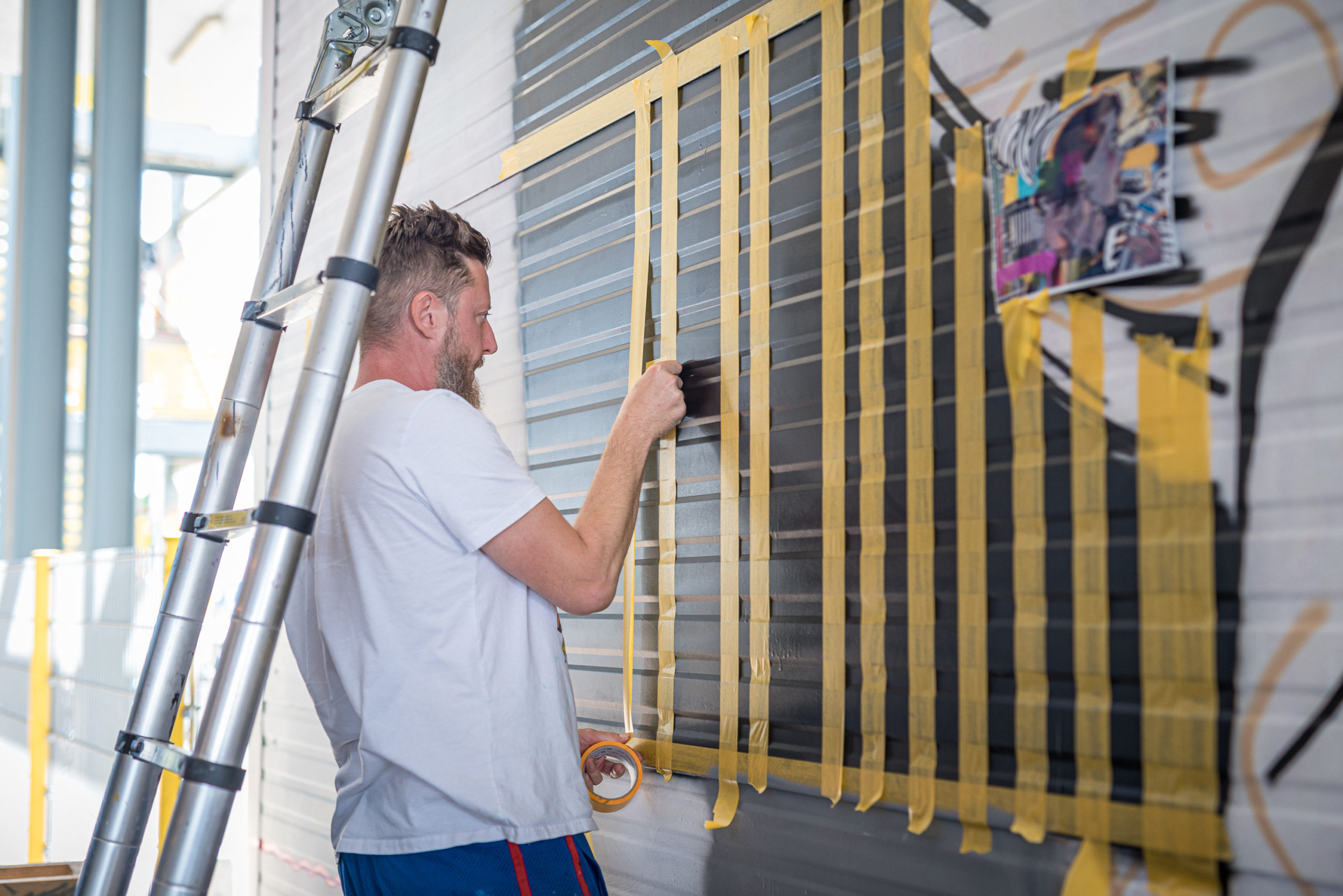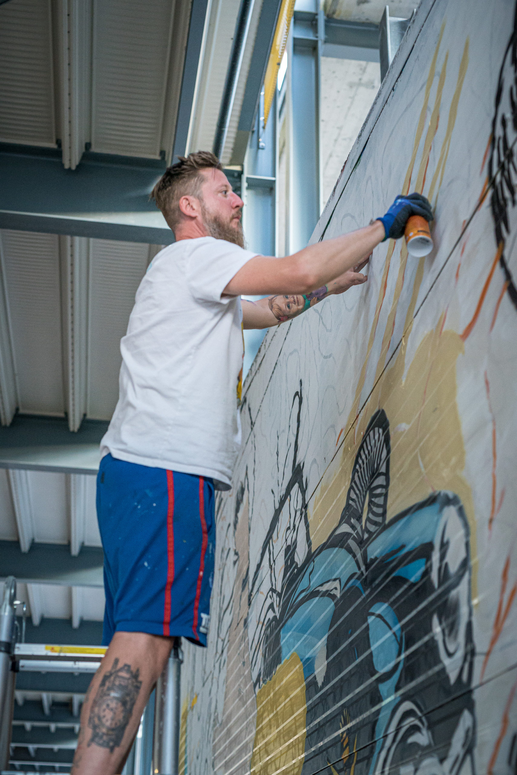 This is suisse graffiti artist BUST ART spraypainting with and for the HOUSE OF PAINT project in Geneva, of course using MOLOTOW Premium Spraypaint!