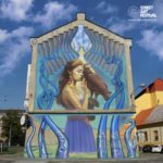 Another two paintings were being made simultaneously in the areal of Univerzita Palackého, which was the main partner of the festival. Street artist Salla Ikonen from Finland paid tribute to Czech painter Alfons Mucha with her portrait of local girl. In proximity was created the third and the last mural, portrait of the first Czechoslovakian president, T.G. Masaryk from the Czech artist Chemis. This mural thanks to the socio-political situation in Czechia became literally over night a viral on the social media and reached people over the whole country.