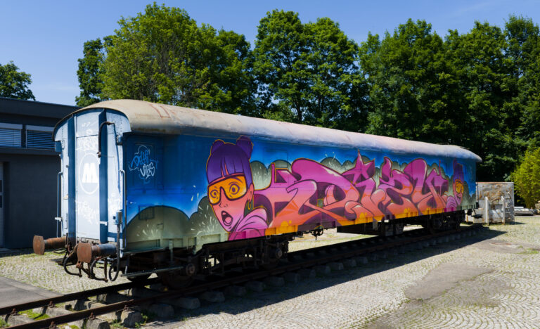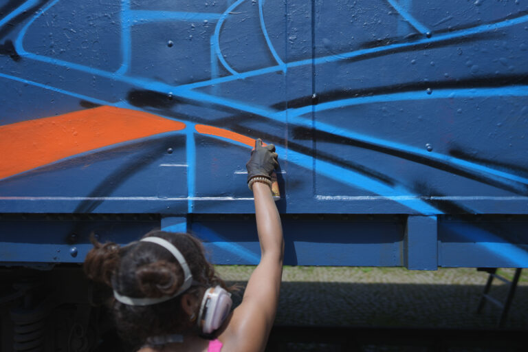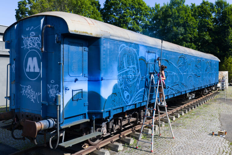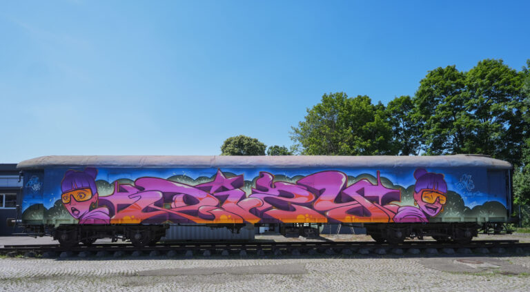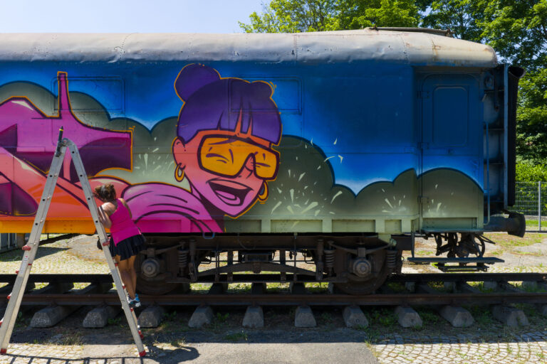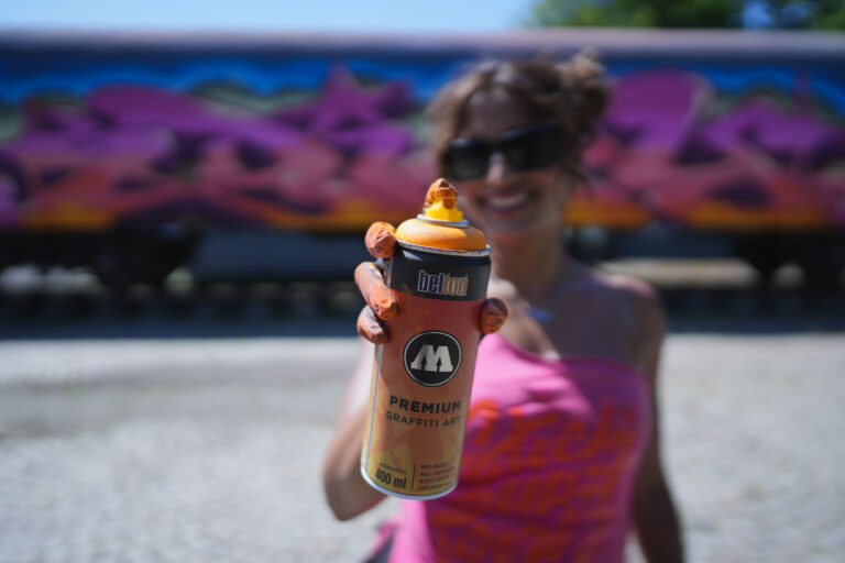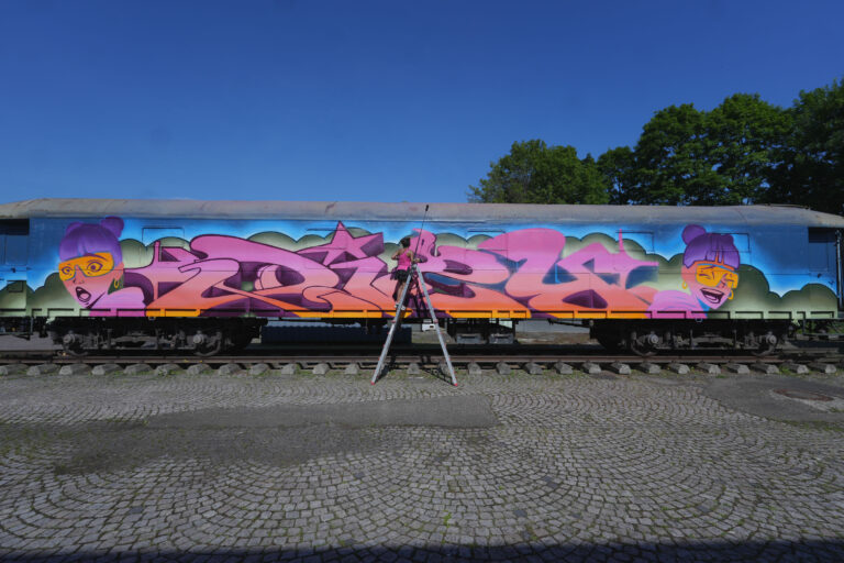 Under bright sunshine and relaxed beats, the STICK UP GIRLZ crew member grabbed a can and gave the MOLOTOW Train a new look: technically precise, with powerful contrasts and color gradients that really pop.