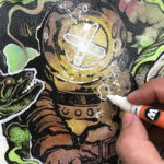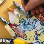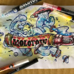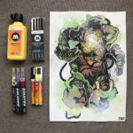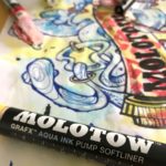 Hungarian Graffiti artist FORK4 played with the MOLOTOW ONE4ALL Acrylic markers, the MOLOTOW GRAFX AQUA INK Markers and the BLACKLINER pens, ending up in a nice mixed media drawing! Check out the photos below!