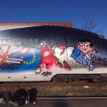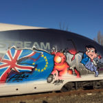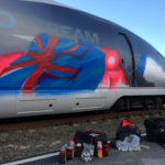 “I was invited to paint a train that was riding Channel Tunnel between France and England, so made the theme as much as i could in one hour and check the sunrise next to the train. Of course i bombed the other side with a MOLOTOW AND FRIENDS AFX  quick chrome. Was a fun challenge to show my opinoon on that topic, and happy to paint on a different surface. It was fuckin cold january but my best friends MOLOTOW COVERSALL, BURNER CHROME and the PREMIUM worked well.  Thanks the help of my friends Ezum and Koen to made this happen, and thanks the all time support and the best tools MOLOTOW”