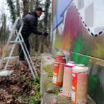 Hungarian graffiti artist FORK4 folllowing up on his FOREST JUMPs with this new wall painted at one easy spot in the Budapest suburbs. FORK went there with a well selected color range of MOLOTOW PREMIUM and MOLOTOW COVERS ALL COLOR to create this: