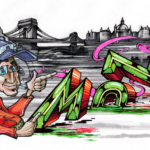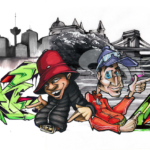“Last week my friend Mone78 the legendary wildstyle pioneer from Szeged Suncity / Hungary made a sketch for a exchange project with me. We live far away from each other but we want to make a concept when the xchange sketch looks like a one place and time drawing. We used the tones of hungarian national colors, red – white(grey) – green as you see in our flag. Mone78 made a Szeged background I made a Budapest panorama to show where we come from. And as always made Bboy characters like caricatures of us:) That’s how we roll in Hungary breaking trough time, distance and style to make a good concept. Shouts to the southern boys Tha – Cra crew!” (FORK4)