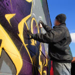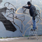 “Here we are battling very cold temperatures… certainly not ideal painting weather, but I managed to jump out today just to warm up a bit and get in my first wall of the year. The day consisted of snow flurries and frozen fingers.”