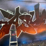 Graffiti artist GESER rocks his side name “ASUEM” with a color combo much like this spring’s weather… Half warm, half cool. Featuring MOLOTOW COVERS ALL Color and MOLOTOW PREMIUM Geser Black Red with an icy FLAME PAINT blue Light Riviera Outline!