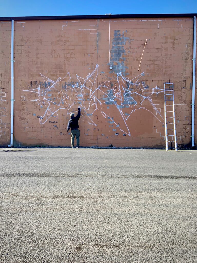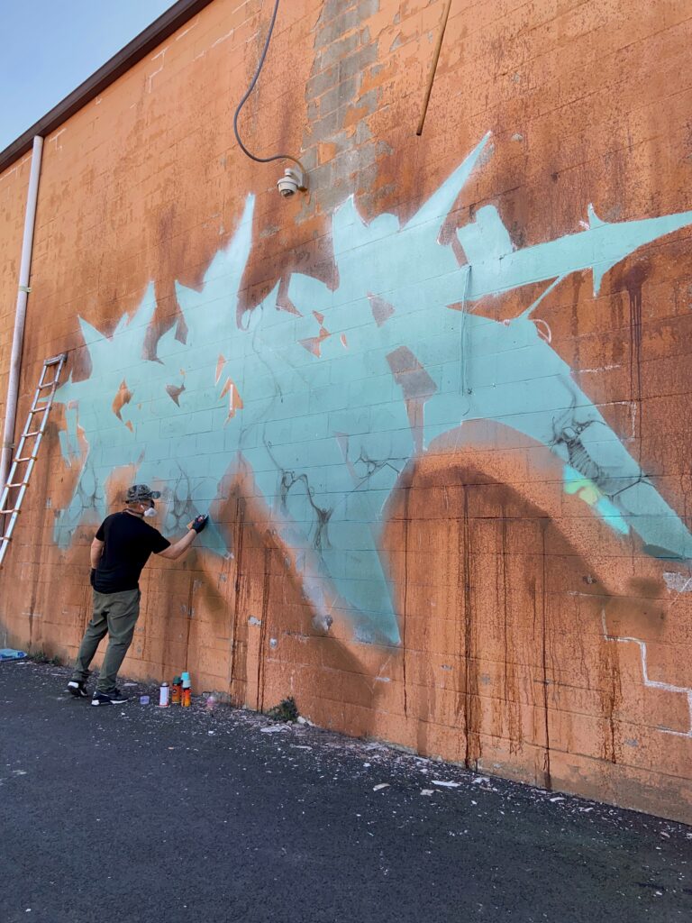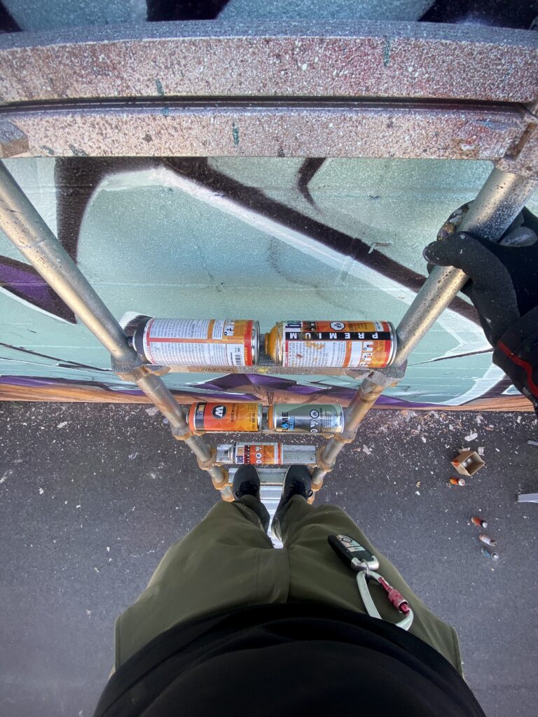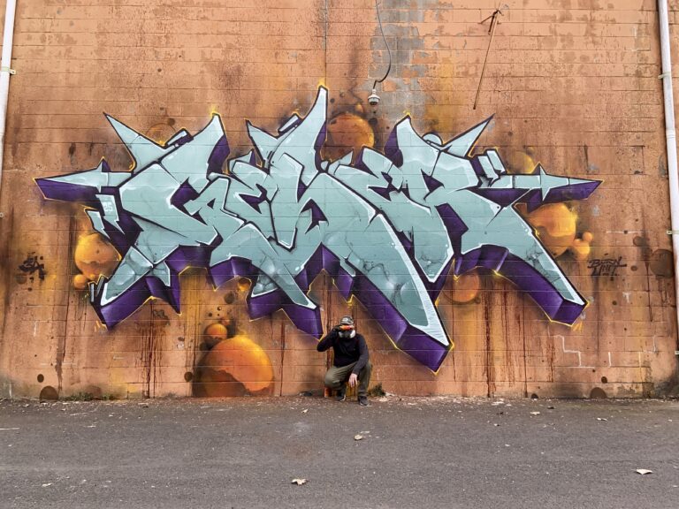 GESER of 3A CREW headed to a wall loaded with cans and no set plans, rocking out with MOLOTOW Premium spray-paint of course using GESER Black Red and Loomit Aubergine, Dare orange, Verdigris, Aquamarine, Carribean, Currant, Autumn Leaf, Zinc Yellow, Transparent Black, among others!