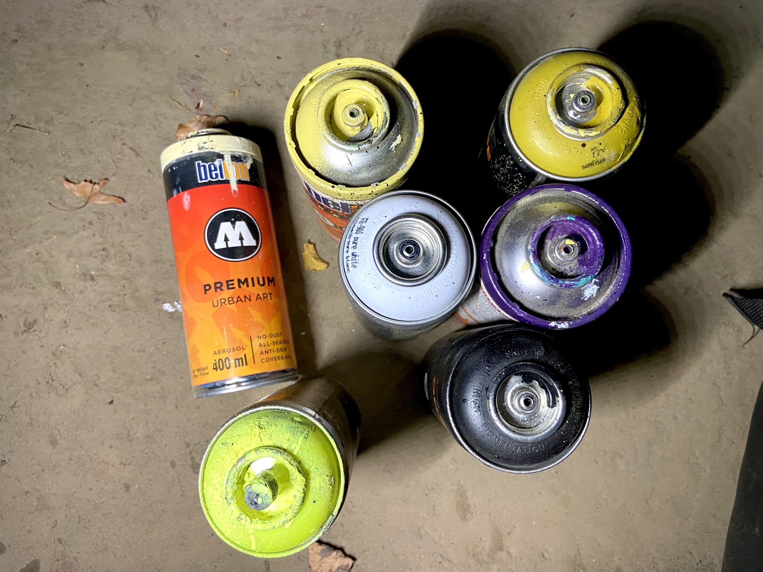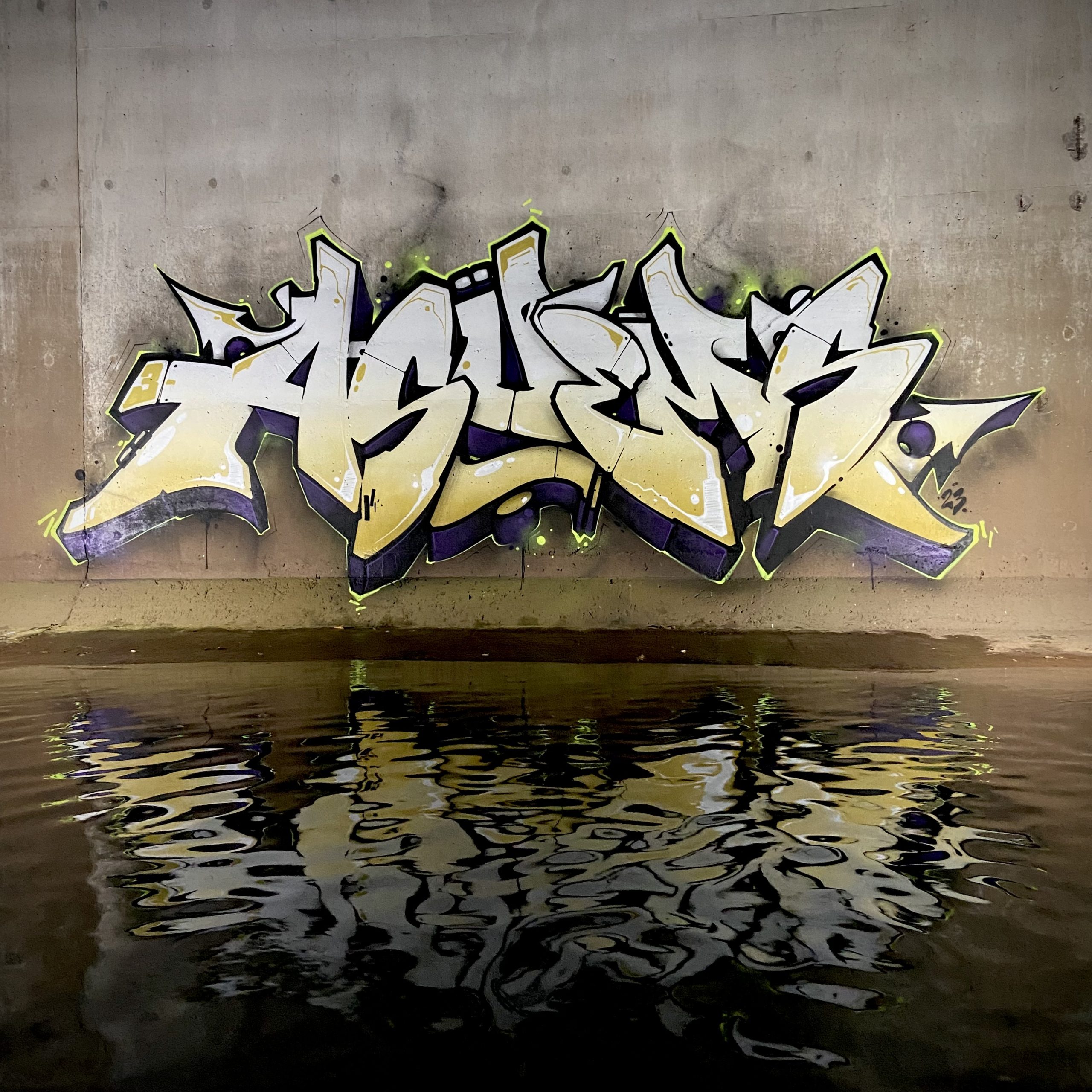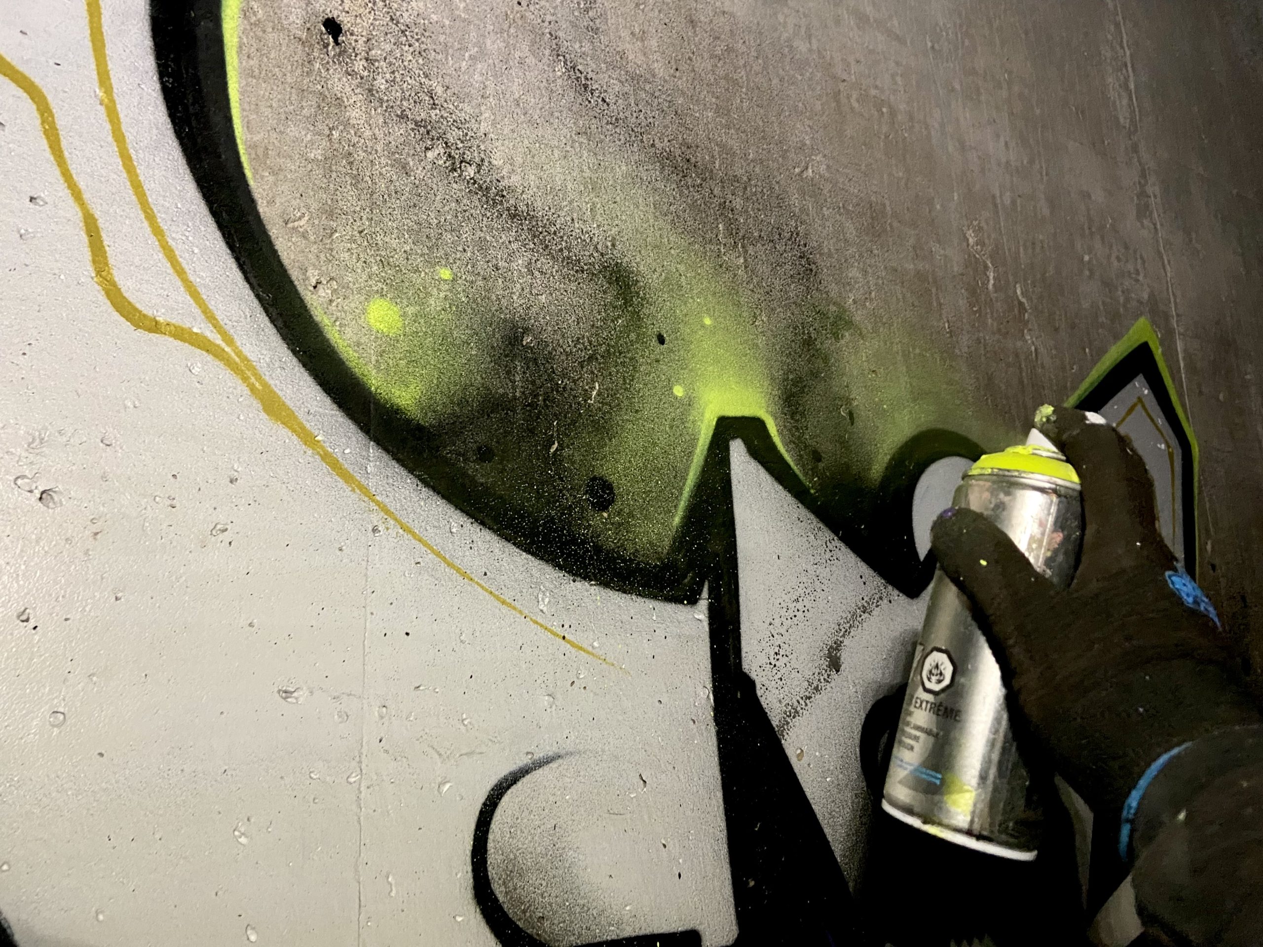 Graffiti artist GESER got out and freestyled his Alter-Alias ASUEMS, using a mix of MOLOTOW Premium and FLAME spraypaint. Some colors include MOLOTOW Premium Vanilla, Mustard, Crazy Plum, and FLAME Blue Neon Yellow, which has become his favorite forcefield color as of late… hits hard!