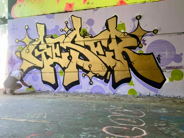 This is Graffiti artist GESER of 3A Crew shining bright with the MOLOTOW BURNER 600 GOLD!