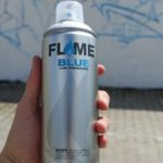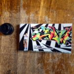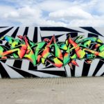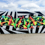 Graffiti artist S.KAPE289s latest piece is an optical illusion. For the psychedelic fill in he used the FLAME BLUE Spraypaint Flourescent colors. The background was painted with “deep black” and “pure white” only.