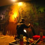 It been a very dark and special night in Stockholm at the Club Fabriken, a few days ago Puppet painted live at a really crazy techno hardcore club, perfect for the Gridman..”if you are too open minded your brains will fall out”, grid factory by Puppet 2010. See the photos and video after the jump