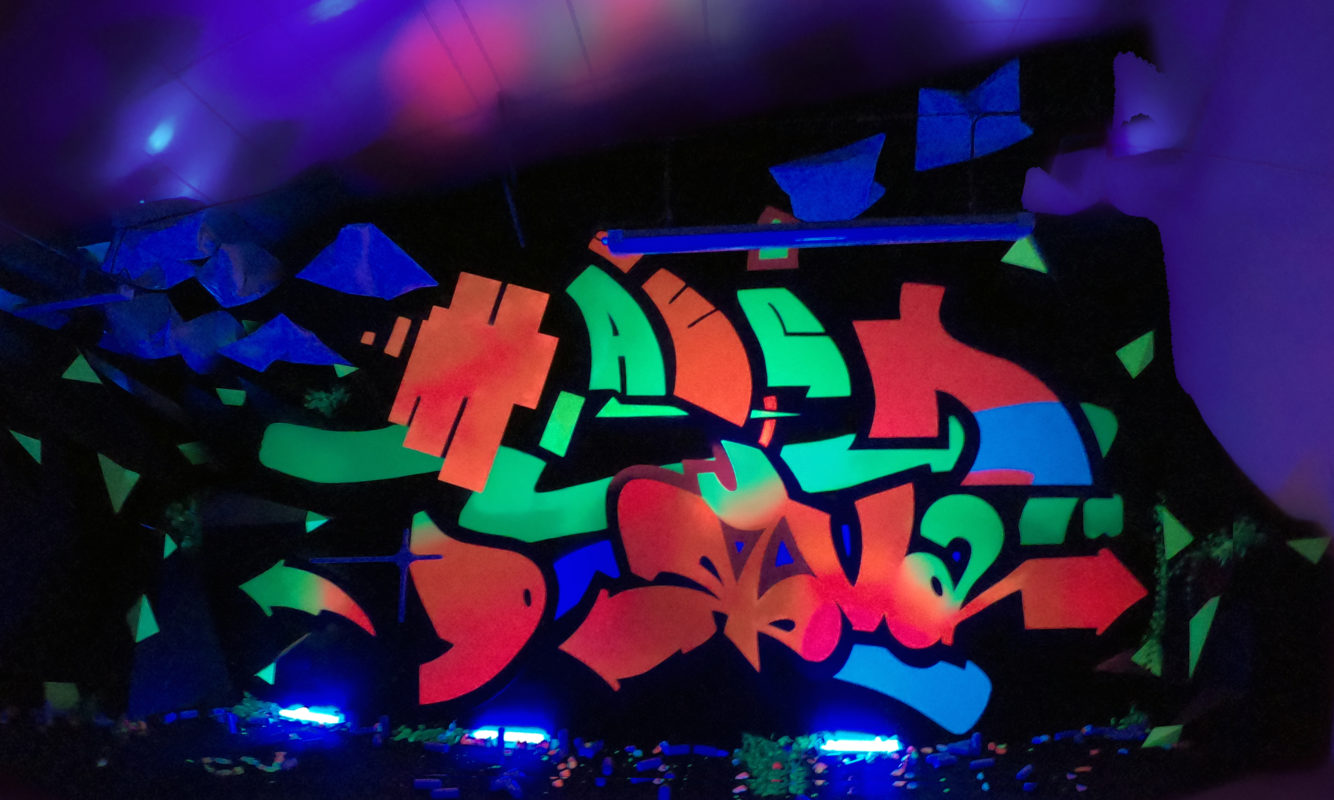“We are used to take inspiration from electronic music. For this wall (at @1000m2_ ) we took a track from @teslasonic (release on @noctanumerica records) to make a visual traduction of this song. Fat lines for the beat, neon colors for the melody. Our scenographer @charlzarl helped us to bring a galactic and spatial dimension to this project. The video is all about the process, and the universe we had imagine around this track. Thanks to @juliette_spit for photos “
