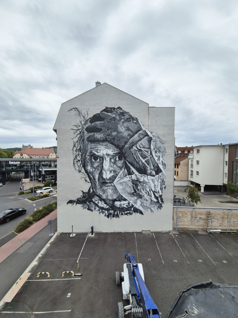 Aschaffenburg has a new, striking landmark. As part of this year’s Cultural Days, a mural was unveiled that is far more than just another artwork on a facade. It’s a tribute to an urban legend: the “Plastic Man”. And it shows once again how mural art can not only enrich public spaces but also evoke collective memories and retell stories.