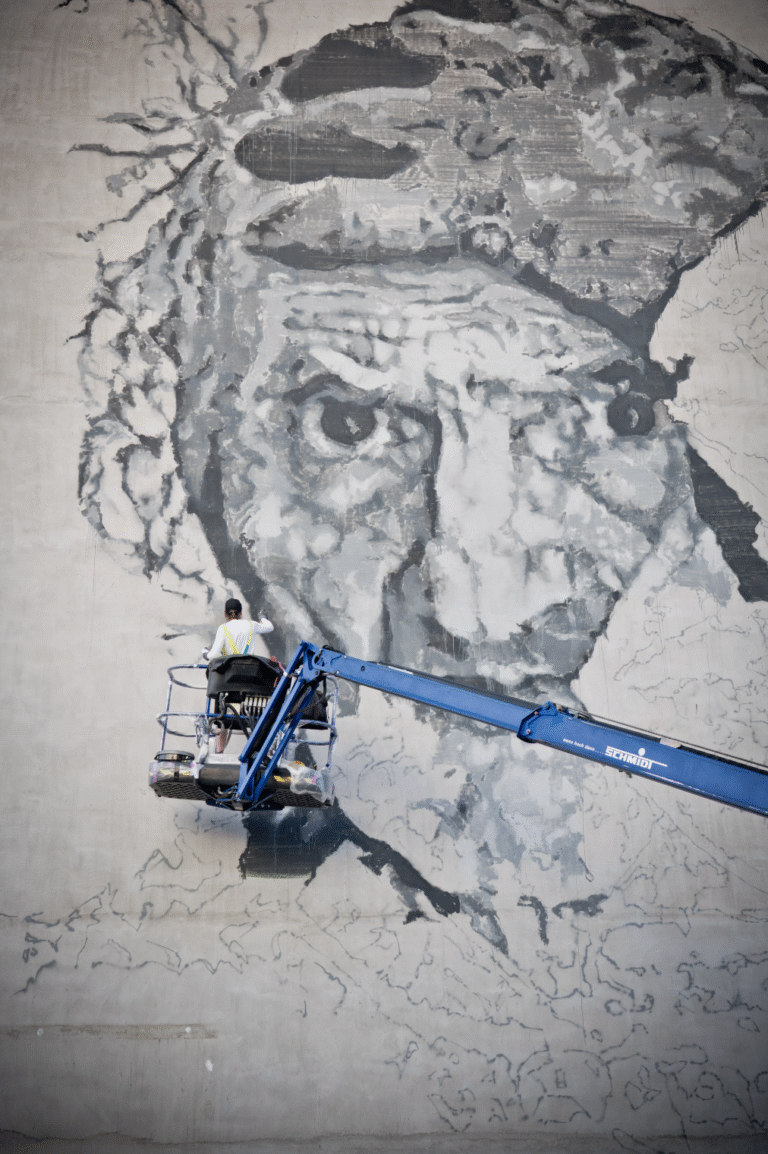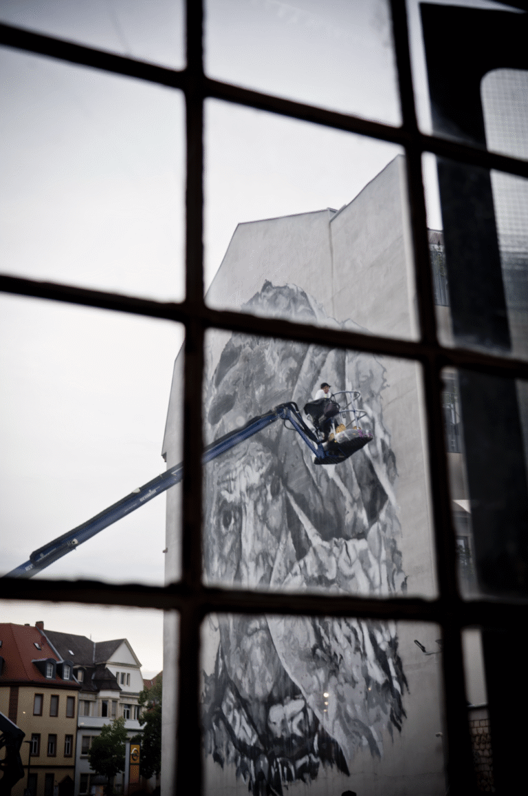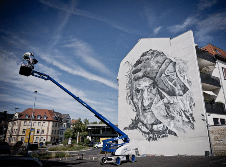 Since 2021, the Musik-, Kunst- und Kulturinitiative Aschaffenburg e.V. has been bringing impressive urban art projects to the city as part of the Aschaffenburg Cultural Days. Names like HOMBRE and HERA have already left large-format murals here, which caused a stir far beyond the city limits. For the current project, a true heavyweight was brought in: Hendrik Beikirch.