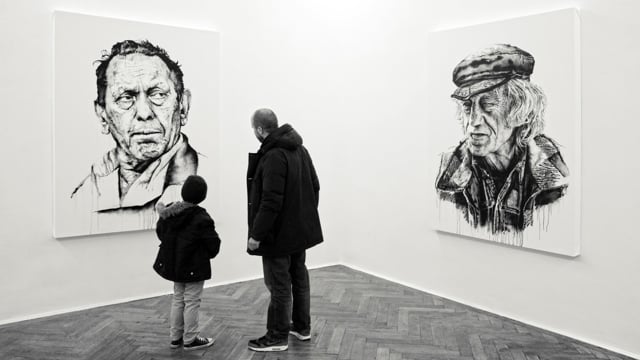 In both his large-scale murals and canvases, Hendrik Beikirch – also known as ECB – depicts the personal and the private, portraits that tell a story. Instead of illustrating famous people, he draws attention to those who have a magnetic personality or some other recognition value, characters who become all the more interesting because they remain anonymous.