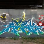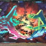 Shapes and letters, full colors and straight lines, from tags, throw-ups to wild style, for him it’s all about using the spraycan with style and a strong visual impact. Invited to a number of graffiti and street art festivals, he has traveled and painted walls all over Europe, the United States or Canada.
