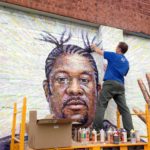JIMMY C sent in some photos from Baton Rouge, Louisiana. He was invited there by the Museum of Public Art to paint portraits of people from the community. The last photo in the image gallery shows the whole wall was including a piece by graffiti artist Does from Brazil.
