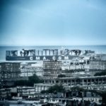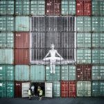 “In 2007, I started Women Are Heroes. To pay tribute to those who play an essential role in society, but who are the primary victims of war, crime, rape or political and religious fanaticism, I pasted portraits and eyes of women on a train in Kenya, a Favela in Brazil, a demolished house in Cambodia. They gave their trust and they asked for a single promise “make my story travel with you”. I did it: on the bridges of Paris and the walls of Phnom penh, the building of New York, etc. I wanted to finish Women Are Heroes with a ship leaving a port, with a huge image which would look microscopic after a few minutes, with the idea of these women who stay in their villages and face difficulties in the regions torn by wars and poverty facing the infinity of the ocean. It did not happen at the time… But during the last 10 days, we pasted 2600 strips of paper on the containers with the dockers of the port … And this morning we saw the ship leaving the port. I have no idea of what is in the other containers on the boat: stuff from people leaving a country to build a different life in another region, goods that will be transformed, worn, eaten in a different country. I have no idea where and how people will see this artwork but I am sure that some women far away will feel something today …. And in Le Havre, we are exhausted and proud.”