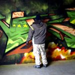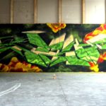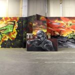 Graffiti artist Kast of AFX Crew had the chance to paint at Budapest’s Airsoft Arena with his crewmate Fork! A military style with camouflage, battle scenario, explosions, smoke…footage after the jump!