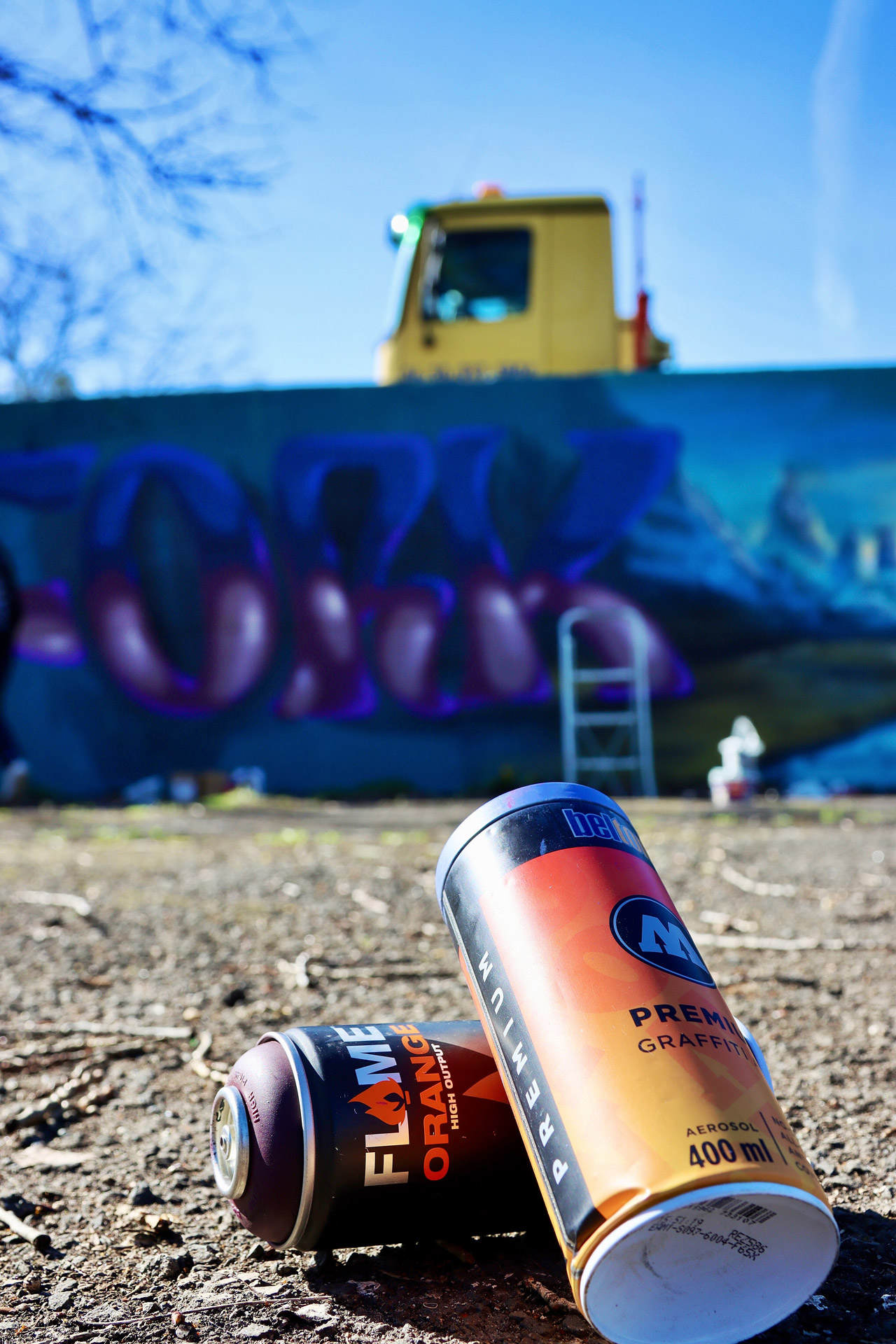 “This project called “Land of the lost” because of the landscape, bones and stones looks like a middle earth / jurassic park theme without dinos 😀 I used FLAME Orange´s dark browns and vanilla and MOLOTOW Premium Mauve tones, Grape, Seen nightblue and Viola for the piece and stone grays, khaki and some ceramic and light blue for the valley.”