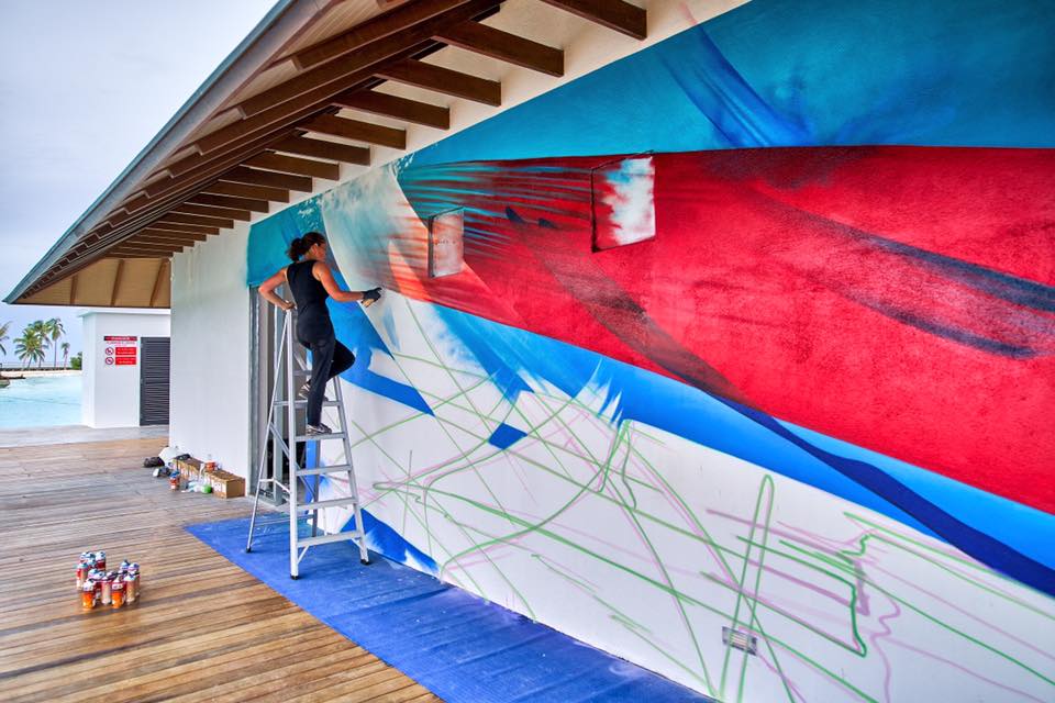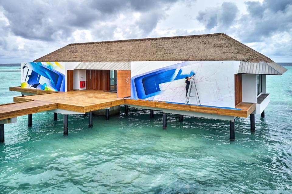 MADC´s latest project brought her to the most beautiful and surreal places on planet earth painting ocean villlas for the Pullman Maldives Maamutaa Resort with MOLOTOW PREMIUM. Thanks to Marco Prosch Photography for the amazing pictures and thanks to Molotow-India for the paint supply! Check out the amazing work below!