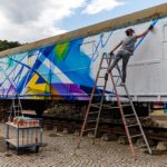 As MADC she did her first graffiti piece already in 1996, and became known in the early 00’s for her burner walls, with dynamic wildstyle-pieces placed in detailed sceneries, often with themes and motifs taken from fantasy and sci-fi such as dragons and dinosaurs. Already these early works revealed a passion for meticulous accuracy. Her major international break trough came however in 2010 with the production of the work that has become known as the “700-Wall” – a 700 square-meter work along the train line between Berlin and Halle. This painting is most likely the largest graffiti mural created by a single person, and it was finished in four months time.