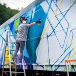 After the 700-Wall MADC has produced a few more thematic storytelling murals with detailed sceneries, but has also started to change direction in her artistic path. Since 2009 she has thus expanded her artistic outlet from graphic design and public murals into the format of canvases and fine art exhibitions. And in both her canvases and more recent murals the representational and narrative structures have begun to give way to more abstract painting, to images where the fore- and background have been flattened out and forged together with the middle ground as if the painting was painted on superimposed layers of thin glass.