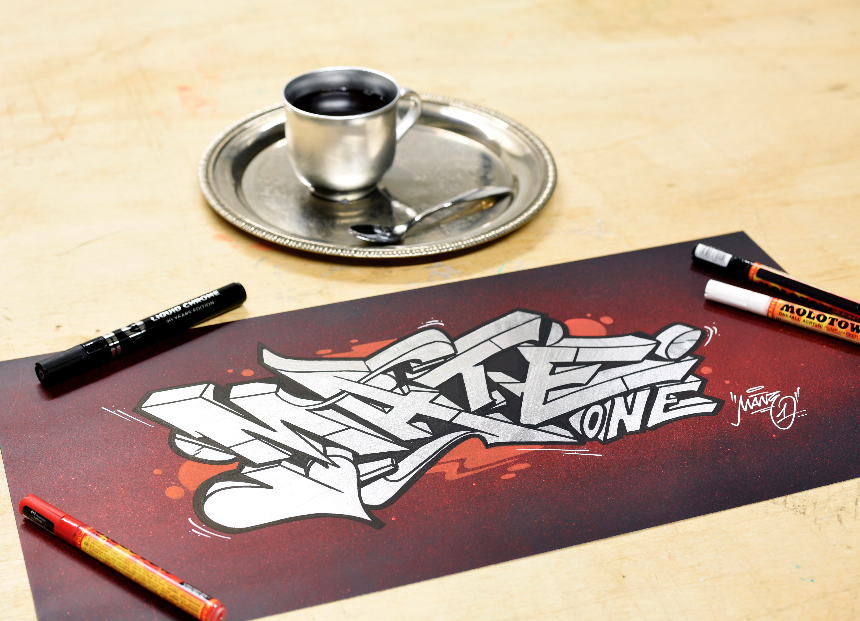 Graffiti artist MATE ONE painting a sketch with MOLOTOW ONE4ALL and the brandnew MOLOTOW LIQUID CHROME Marker! Here is his short feedback on the LIQUID CHROME Marker after he used it for the very first time: