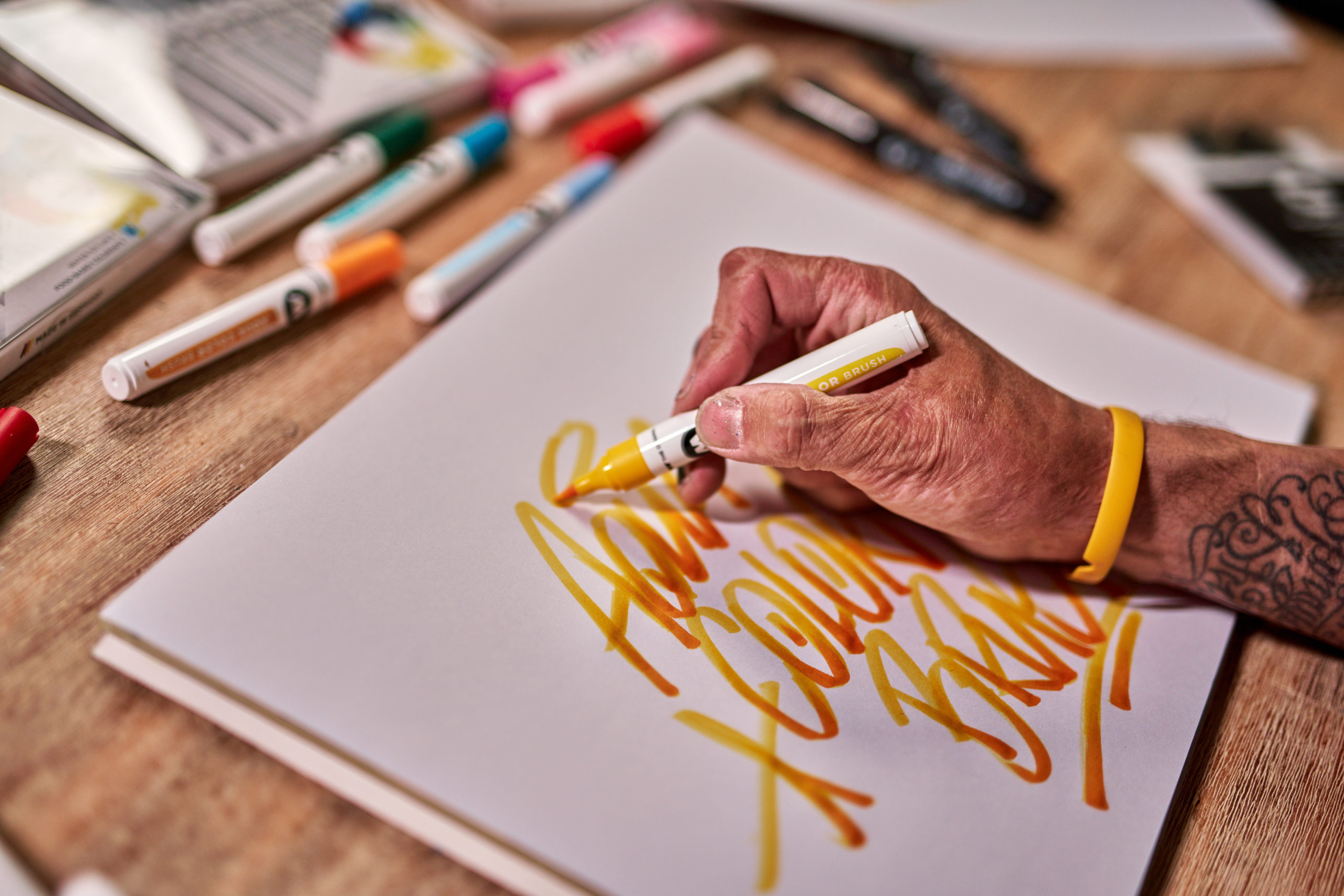 The markers are water-based and very color-intensive at the same time. Thanks to the elastic brush tip and the fluent ink flow you can easily do color transitions.