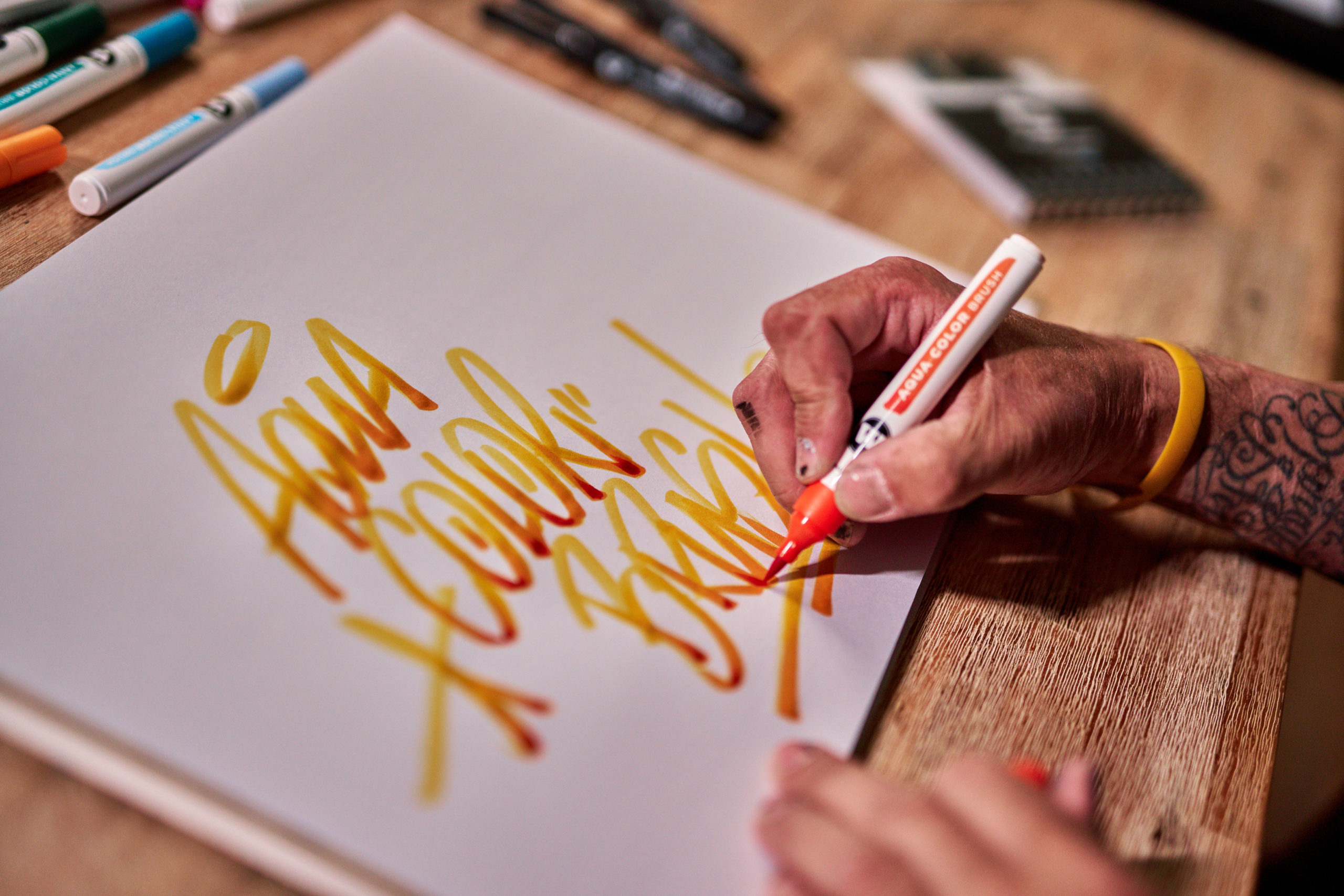 Watch the German graffiti artist SLIDER doing colorful tags on paper using the MOLOTOW AQUA COLOR BRUSH.