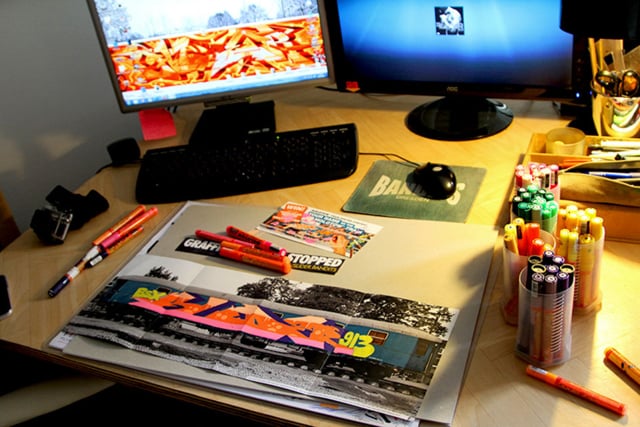 Graffiti Artist SLIDER (Bandits, BSX Crews) sent in a nice short video painting the MOLOTOW TRAIN POSTER, if you want to paint such a poster as well or particiapte in the CONTEST please check in here to read details how to submit your artwork! Please find a photo of SLIDER´s final MOLOTOW Train after the jump! He is invited this year to paint the train at our HQ so stay tuned for some stunning footage in a few weeks!