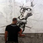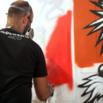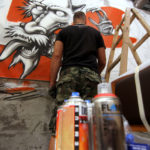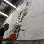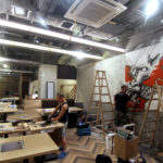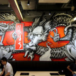 We just received photos of Street Artist MS painting with FLAME BLUE a nice commission piece for Inahachi Shabu Shabu restaurant in Tai Wo supported by Write The Future Hong Kong. Checkout the photos inprocess after the jump!