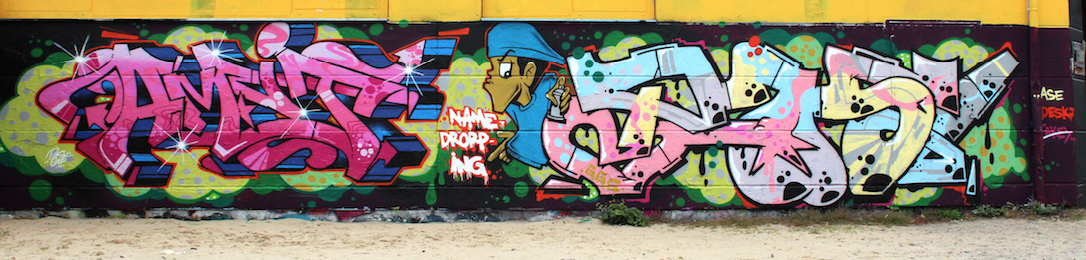 Hamburg graffiti artist AMIT just kicks off with his project NAMEDROPPING in where he meets up with friends and other graffiti artists to exchange names to paint on walls. Three interesting collaborations already went down: walls with graffiti artist SOFLY, PASONE and YUGO. Check out these painted with FLAME BLUE and more here and here