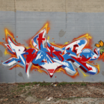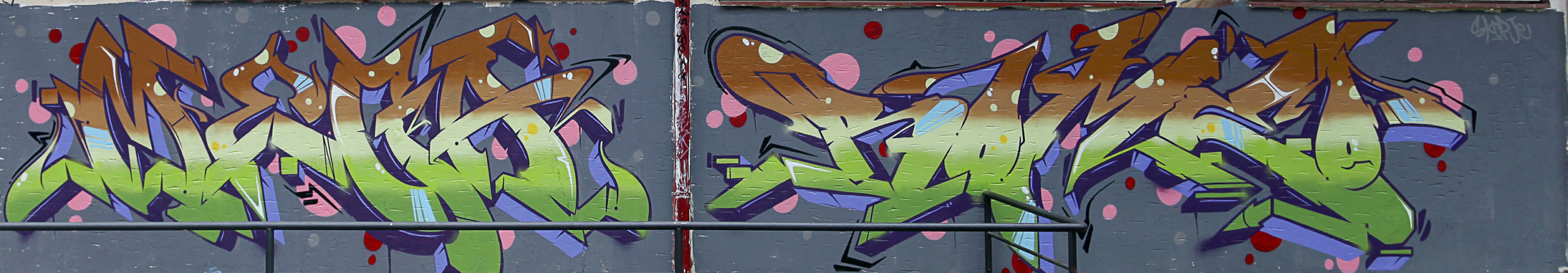 They painted with MOLOTOW PREMIUM, COVERS ALL COLOR and FLAME BLUE cans from the local graffiti shop ‘Hrom’ (which means chrome)