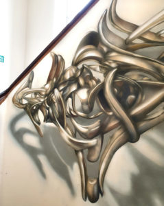 British Graffiti artist REPLETE just finished this anamorphic bronze style 3d letter piece using MOLOTOW Premium and Metallic Gold from the URBAN FINE ART Spraypaint range!