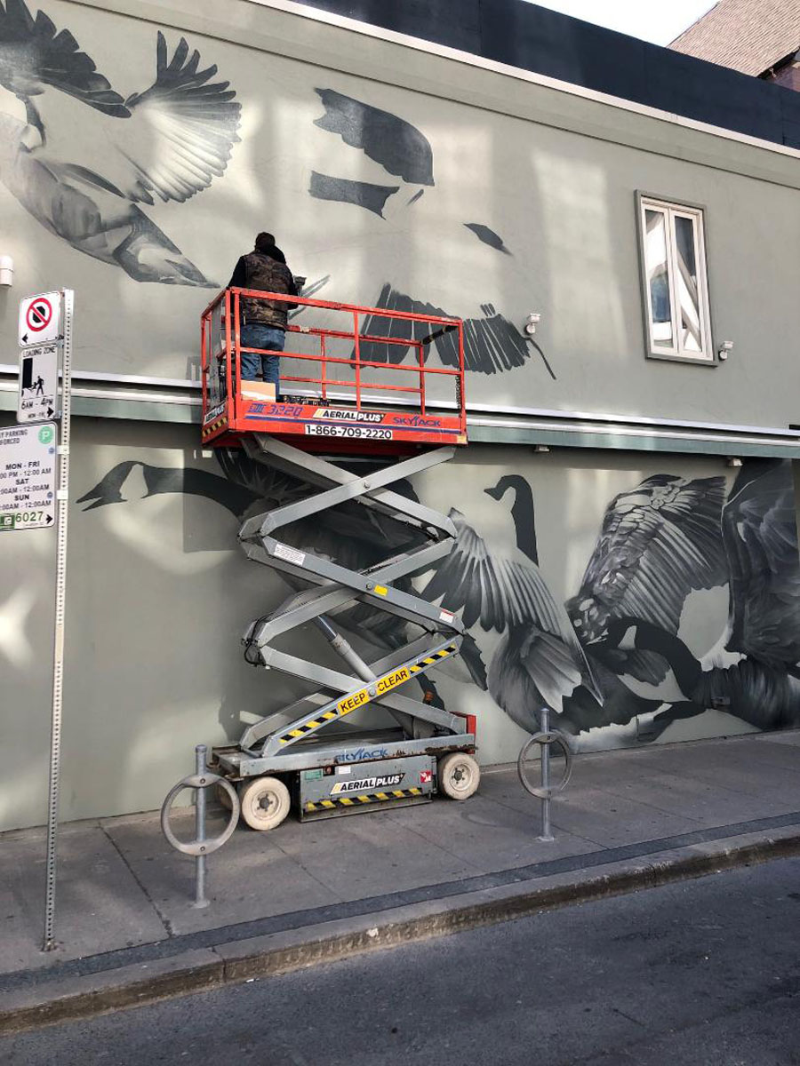 MOLOTOW PREMIUM stone greys and dark grey black were the weapons of choice for this Mural of Canada geese painted by graffiti artist BACON and RONS recently! Check out the photos below!