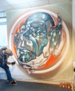 British graffiti artist REPLETE has created a new entry in his Neon Demon series with this one of a demonic metallic head with headphones for horns. Painted with 60 tones of MOLOTOW Premium at the @uthinkpdp charity in York UK.