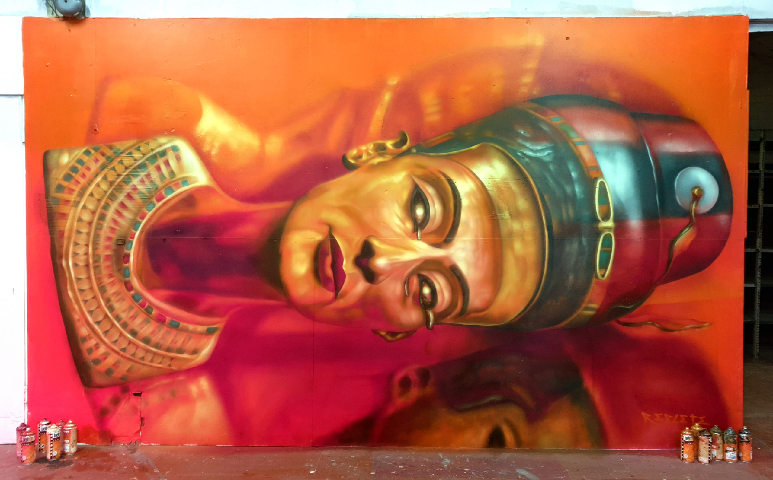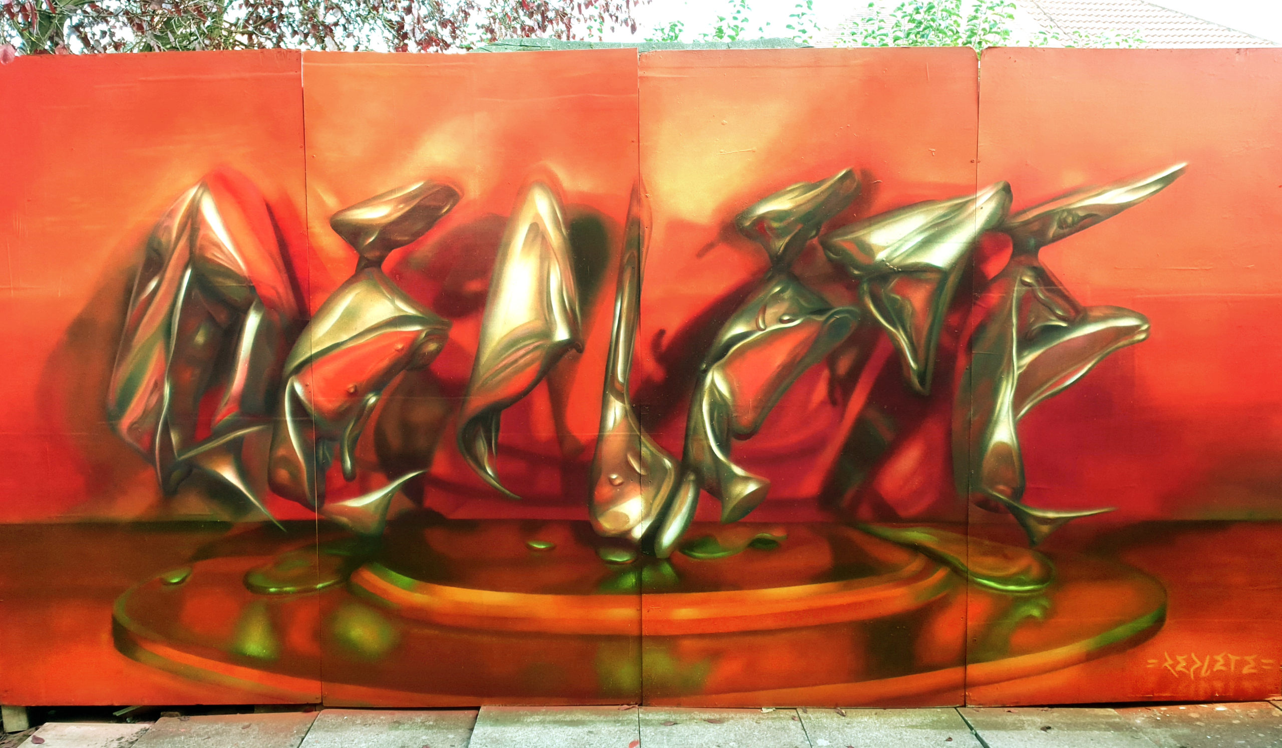 Continuing his neon classical series british graffiti artist REPLETE created this portrait of the Egyptian Queen Nefertiti using the MOLOTOW PREMIUM range and UFA metallic gold. On another new piece Replete continues his experiments with metallic golds using UFA Metallic Gold and UFA Gold Effect with MOLOTOW PREMIUM Gold Dollar to get three golden shades for a dark, mid and highlight to create this molten gold style lettering. CHeck it out below!