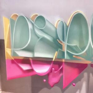 UK graffiti artist REPLETE spray- painted this new 3d sliced letter piece in York UK using several tones of aquamarines, yellows, pinks and greys from the MOLOTOW Premium range.