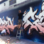 Here we have graffiti artists OSTEO and GESER meet up to rock pieces with MOLOTOW PREMIUM! Signal White and grapefruit fill, with GESER Black Red outlines and mix of blues in the background. Check out the photos below!