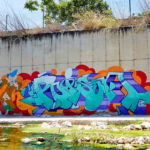 “It is still summer and a perfect time for one of my favourite colour combination!” graffiti artist POISON from Athens, Greece says. The fill in was done with FLAME Spray Paint Riviera, Riviera-Light, Lagoon-Blue with the 3D Viola & Viola Light match perfectly with the red-orange background.