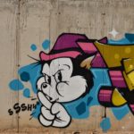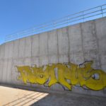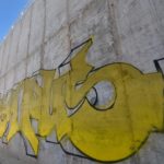 “What is graffiti without exploring new spots? One phrase came into my mind when I found this wall, “Concrete Hideout”. Had to take full advantage of the beautiful raw concrete wall, so I decided to go with the flow and paint a “Poisonous” piece with a oldschool feeling to it. Clean thick lines and clear shines! FLAME ORANGE Mustard Dark, Mustard and Mustard Light were used for the fill in, Crazy Violet & Erica Violet for the 3D .The background was done with Aqua, Aqua Dark and Viola Dark for the small letters. Also added a 1940s character of “Li’l Bad Wolf” on the left as an extra touch. The journey continues, let’s go!”