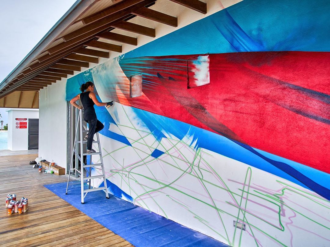 “Summer is finally here and it’s time for the sumerish FLAME color combos! I painted this piece based on a character found on a patch of the mid 40’s. The background explosion pops nicely with the Cadnium and Zinc yellow. The fill in was done with the Light Blue Light, Lightning Blue, Riviera Light and Crazy Riviera. Last but not least, the outline was done with Sapphire Blue.